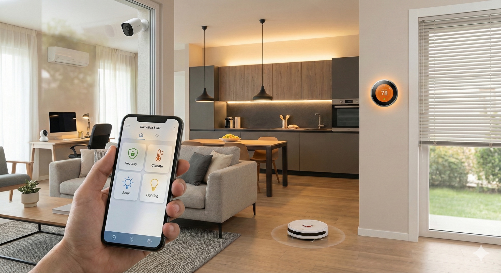 Sicurezza e Comfort si fondono. Sensori anti-allagamento, controllo accessi smart, gestione clima e scenari automatizzati per casa e ufficio.