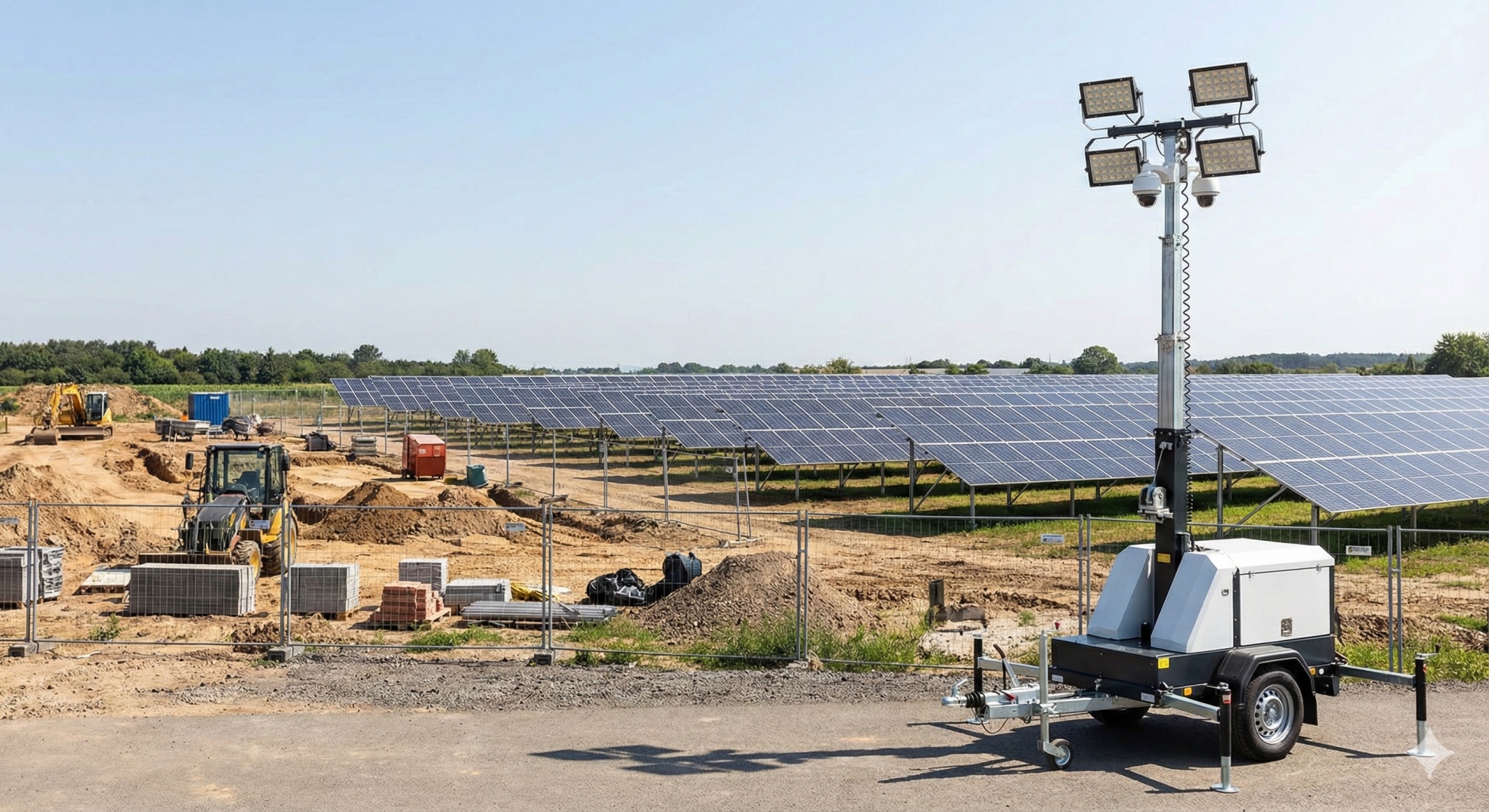 Torri faro mobili e protezione perimetrale per aree isolate e campi solari